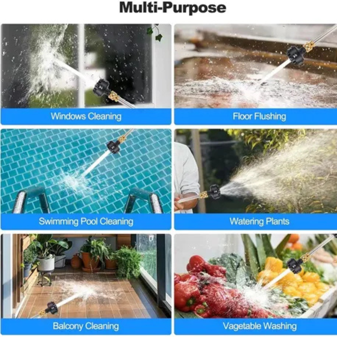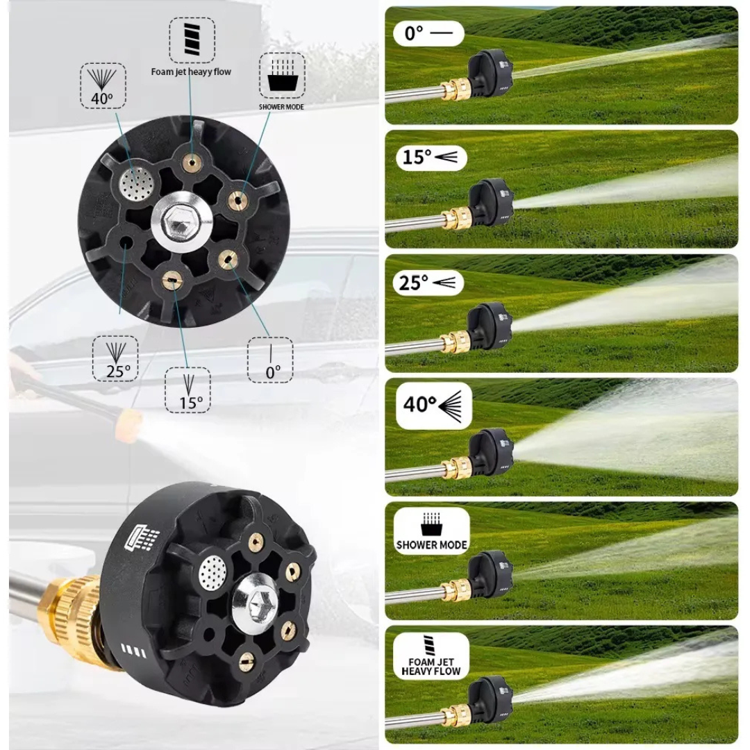 Cambia el tipo de chorro al instante sin desmontar nada. Ideal para diferentes superficies: carros, pisos, ventanas, paredes y más.