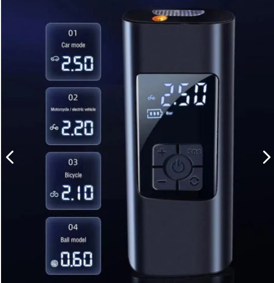 Puede inflar hasta 150 PSI, ideal para llantas de carro, moto, bici y otros objetos inflables.