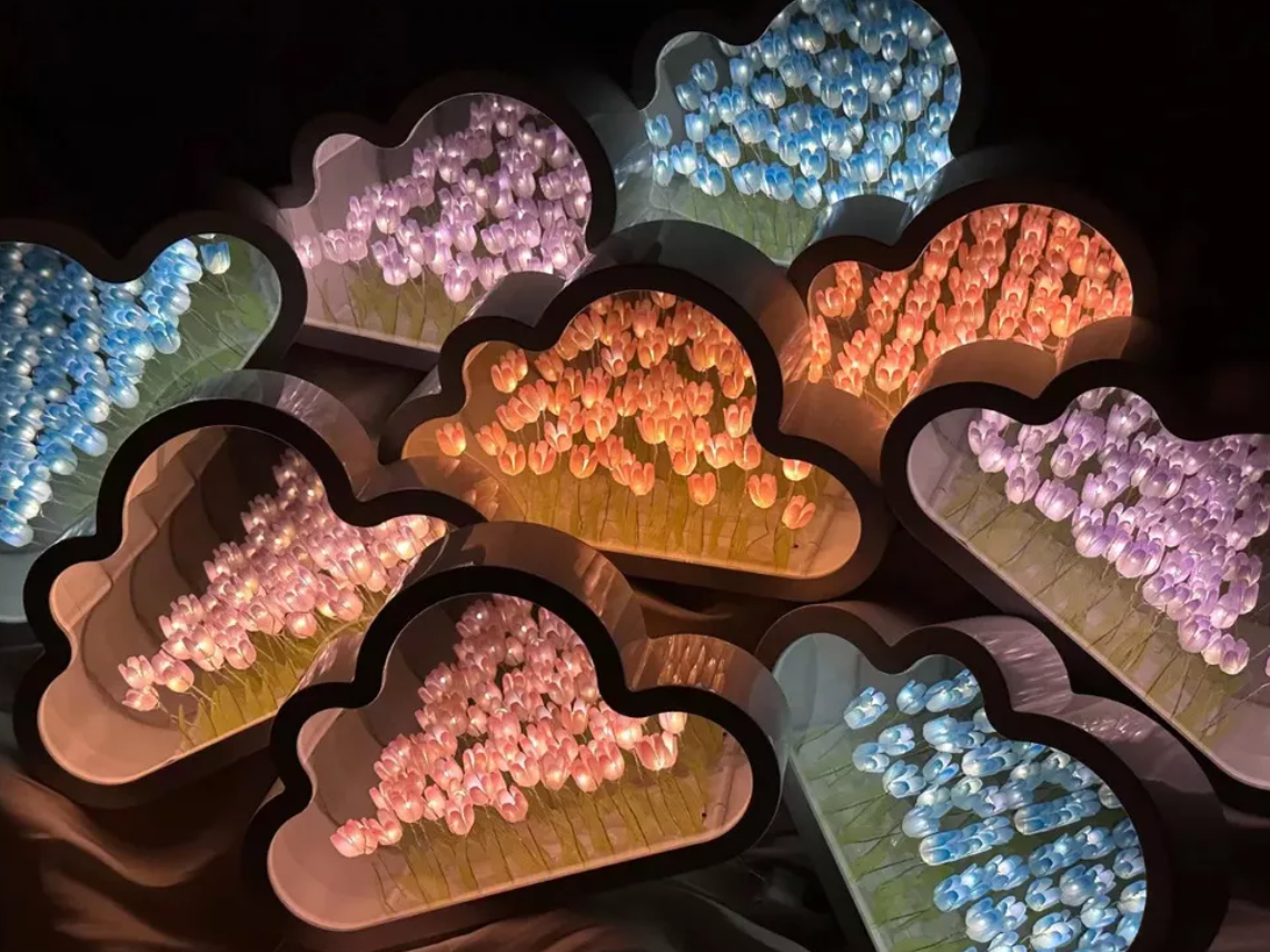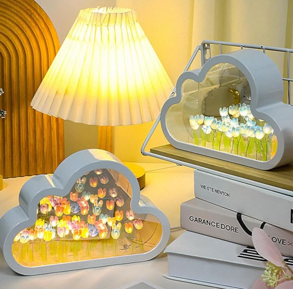 HERMOSA LAMPARA ESPEJO JARDIN DE TULIPANES 3D.