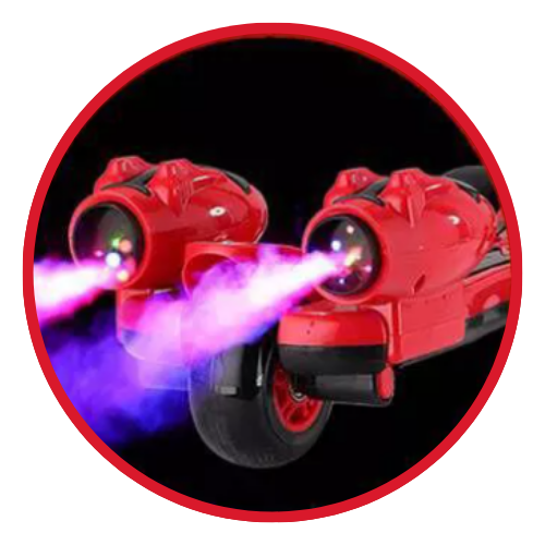 El humo y las luces se activan con un botón en el scooter o mediante el control remoto