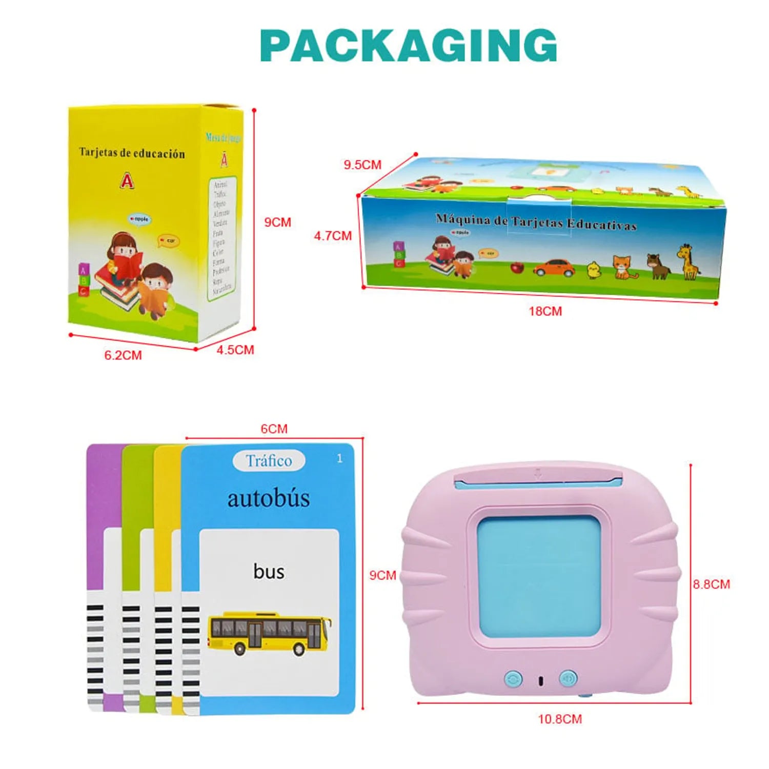✅ Súper fácil. Solo debe insertar una tarjeta y el lector pronuncia la palabra automáticamente.