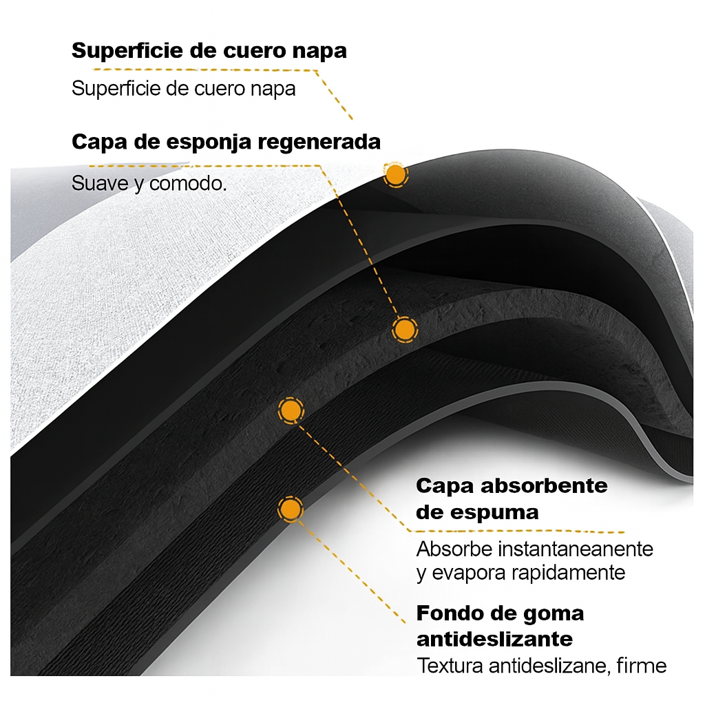 Superficie de microfibra/tejido premium de secado rápido.