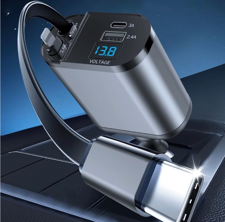 Este producto esta diseñado para ser compatible con dispositivos iOS, Android y todos los gadgets USB, elimina la molestia de llevar múltiples cables y cargadores. Además, su diseño retráctil evita enredos y mantiene el coche organizado y protección contra sobrecargas.