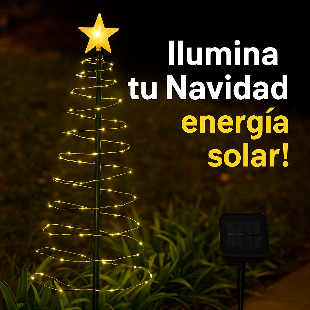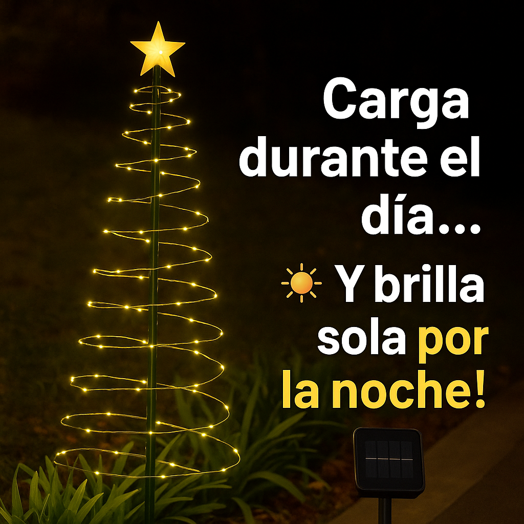 Transforma tu jardín o terraza en un espacio lleno de luz y espíritu navideño con nuestro Árbol de Navidad Solar en Espiral con Estrella Luminosa.