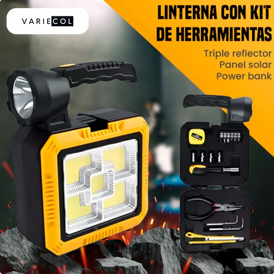 Esta linterna ofrece iluminación potente, recarga solar, y funciones prácticas como power bank y herramientas básicas. Perfecta para emergencias o actividades outdoor.