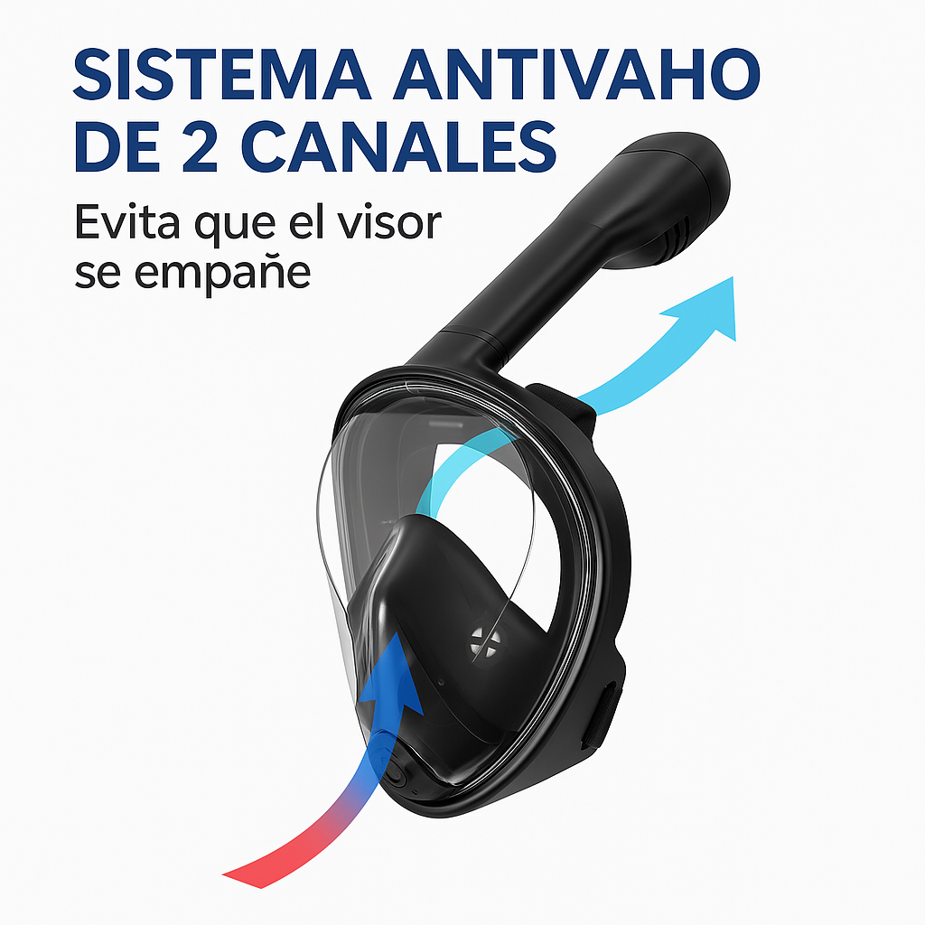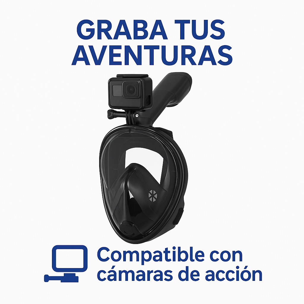 Compré dos porque iba de vacaciones con mi esposa. La máscara es muy cómoda, no entra agua y el sistema de ajuste es firme sin lastimar. Me encantó que trae soporte para GoPro, grabamos videos increíbles buceando con mantarrayas. La relación calidad–precio es excelente. Llegó rápido y todo bien empacado.