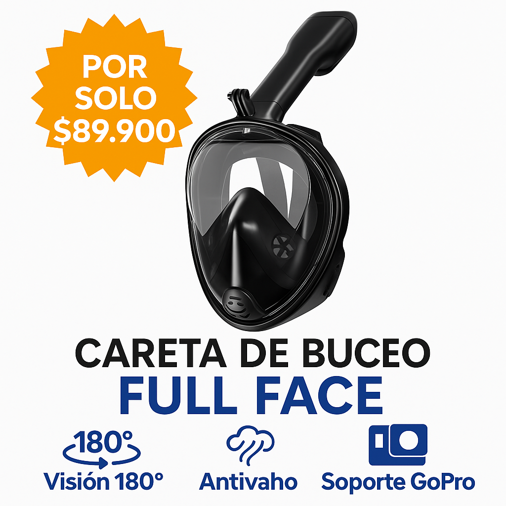 Nunca había usado una careta full face y me sorprendió demasiado. La visión es súper amplia y pude ver peces y corales claritos sin empañarse ni una sola vez. Lo mejor es que pude respirar normal sin sentir cansancio. La usé en un viaje a San Andrés y terminó siendo la compra más útil de todo el paseo. ¡Recomendadísima!