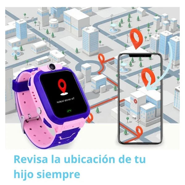 Descarga la aplicación móvil recomendada (según el modelo) en tu teléfono, sincroniza el reloj, y podrás ver la ubicación en tiempo real.